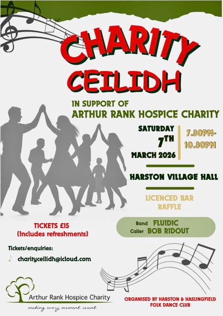 The Harston and Haslingfield Folk dance club is organising a charity ceilidh on 7th March.