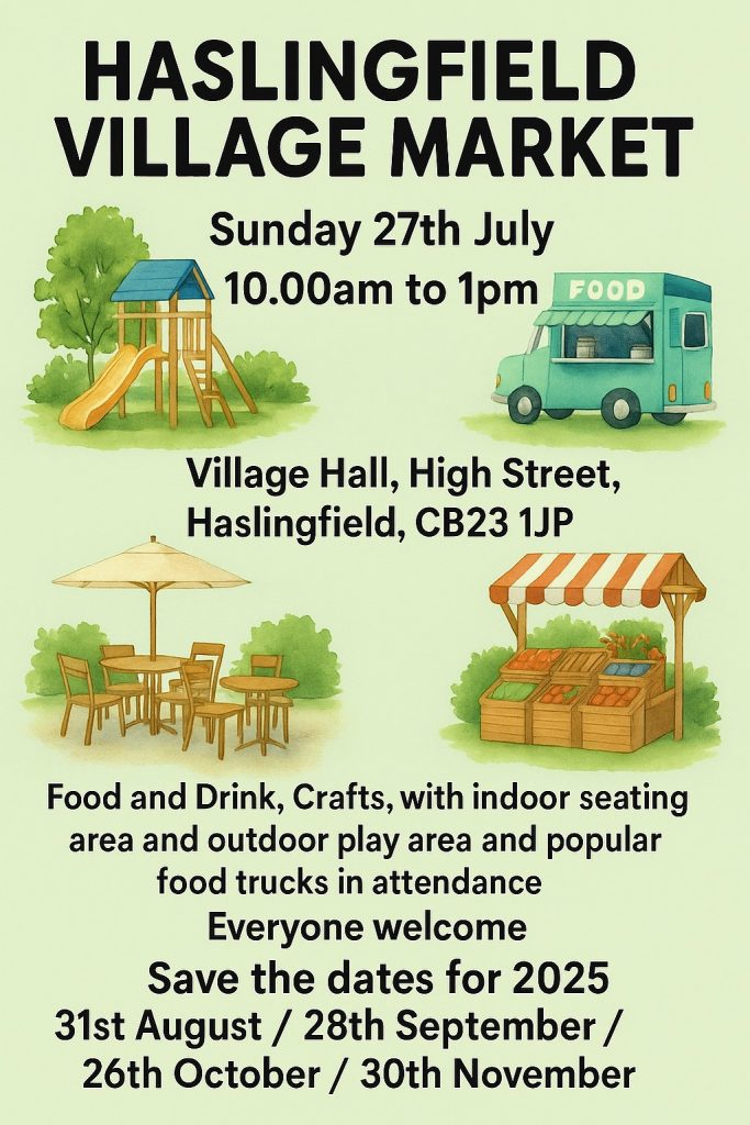 Join us for the very first Haslingfield Village Market — a new monthly event bringing together local food, crafts, and community spirit!